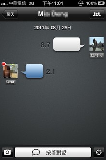 傳輸完成後,畫面中會顯示出音檔長短的秒數,想要聽聽自己的聲音就點一下對話泡泡吧!