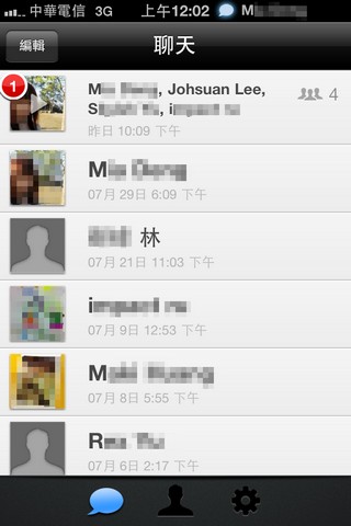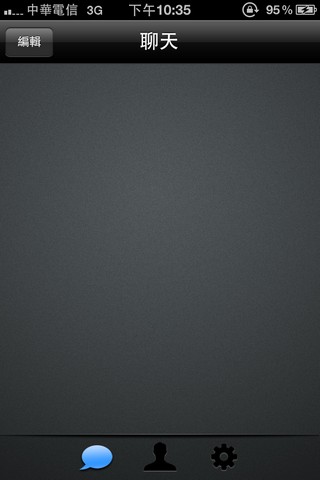 它的系統介面相當的簡單,是以深灰色為主的底色,目前沒有修改背景的功能,但是長時間看下來還滿順眼的。下方的主功能鍵有三個:聊天室、通訊錄、設定聊天室就是你過去曾經和哪些人聊過天,音檔內容都會出現在這裡。