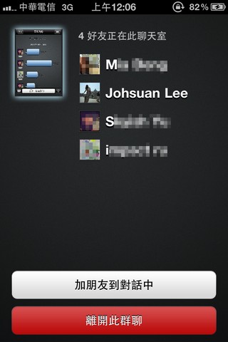 還可以把三姑六婆一起都拉進來!最多可以邀請九個人加入唷!聊天當然是越多人越熱鬧呀=)