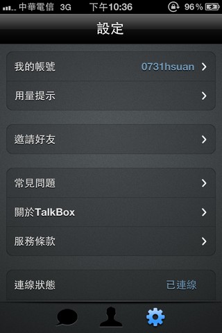 最後一個設定選項,則是一些基本資料和設定,例如:我的帳號、用量提示、邀請好友等…
