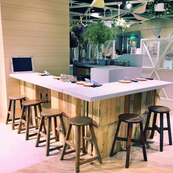 海藏設計位在捷運松山站附近,交通超便利,教室走的是輕工業風的裝潢,擺放大張桌子,天花板上用許倒掛的乾燥花作為裝飾,怎麼拍都美~另外,海藏設計是一間以小班教學為主的花藝教室,每場體驗名額限 8 名,希望每個人都能被照顧到,享受好品質的花藝課程,課程性質也多以使用乾燥花材製作節慶的居家佈置為主,上完課還可以去饒河夜市吃吃喝喝!