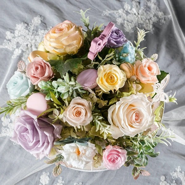 網友怎麼說:非常舒適愉快的上課氣氛與過程,老師認真的講解組合花的手法和技巧,適時的引導給與建議和鼓勵,雖然作品稍有難度而且因為我動作慢花的時間很長,但和老師聊天分享的過程中,絲毫沒有壓力,很順利的完成美麗的作品,是一堂非常棒的體驗課程!
