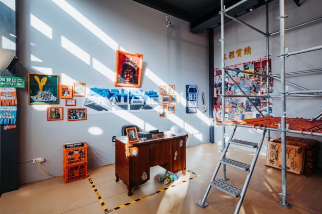 由台灣獨立嘻哈音樂廠牌「顏社 KAO!INC.」策劃的「顏社營造:頂樓持續加蓋中心」,將品牌化身為營造廠,呼應工地狀態的進行式,借用台灣城市獨特的「頂樓加蓋」象徵品牌持續建構的過程,結合了音樂、生活、文化和創意,將工地拆解成展覽細節,從地下室開始挖起,⽤節奏作為鋼筋,以饒⾆歌詞作為磚瓦,透過三座立體全息投影描述品牌的歷程,進入展場,記得要戴好安全帽喔!