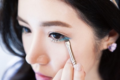 STEP2:藍綠色下眼線讓視覺降溫