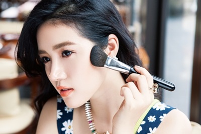 選擇腮紅刷從眼角髮際線開始,向雙頰刷拭,就能打造像陽光灑落般的自然妝感。
