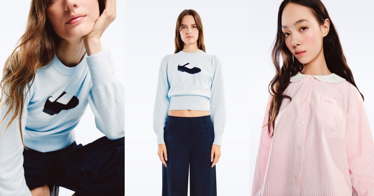 Sandy Liang 重磅刷毛蝴蝶結連帽T恤 NT.7,999/ 蝴蝶結長版風衣 NT.7,999/芭蕾舞鞋圖案毛衣 NT.2,699