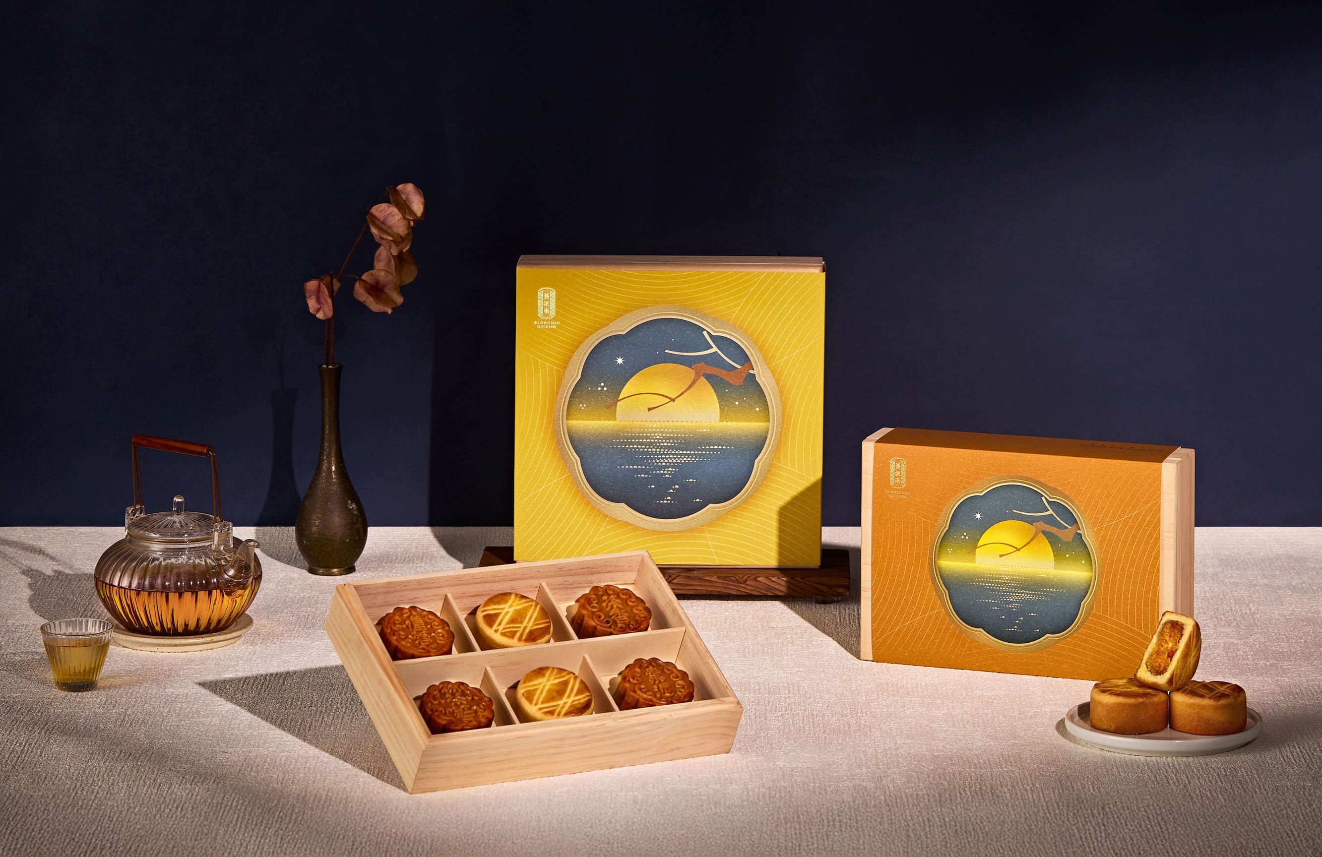 蛋黃酥濃郁圓潤的鹹蛋黃搭上細緻綿密的紅豆泥;鳳梨酥內餡包覆黃金比例土鳳梨與金鑽鳳梨;和菓子帶鹹感交織酸甜滋味,融合日式風格,好拍又好吃!
