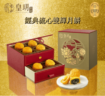 由「奶黃月餅之父」美譽的葉永華主廚領銜,攜手其唯一正式傳人、米其林二星餅藝大師黎永冠共同打造,運用頂級的食材淬煉出經典美味,香港皇玥是全球唯一七連霸Monde Selection「最高金獎」的精品品牌,本次更推出話題新品《迷你開心果月餅》,融合討喜的鹹香氣,入口層次豐富不膩口!禮盒包裝貴氣大方,適合有預算的你中秋一出手全場焦點就是你。