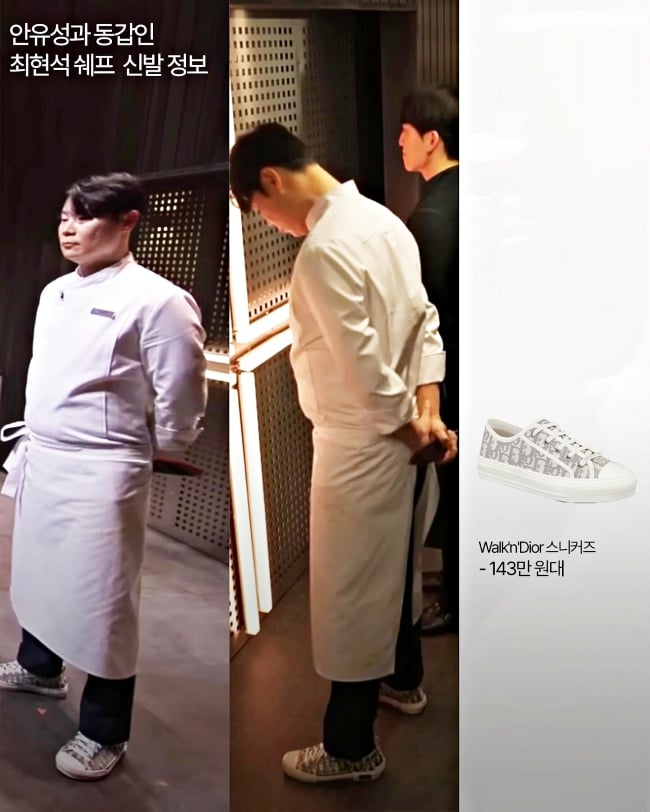 在餐飲界擁有超過30年的「韓國第16 代烹飪名匠」安惟鍟主廚,堪稱節目最大遺珠,1972年出生、今年52歲的他,明明穿的是廚師袍,卻被發現細節行頭都超「潮」,從Chrome Hearts眼鏡、Stone Island長褲到DIOR聯名球鞋,被讚衣品超好,而另一位穿著精品球鞋上陣對決的則是明星主廚「崔鉉碩」,腳上的DIOR B23 低筒運動鞋也是蠻奢華的(笑)。
