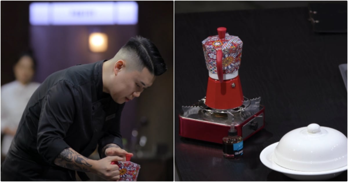 不可能連上菜用的道具都這麼時髦欸!高人氣參賽者「拿玻里美味黑手黨」在進入冠亞軍決賽前的「人生料理主題賽」中,端出融合對奶奶的感人回憶的辛奇蟹肉義大利麵料理,試吃評價前關鍵步驟…淋上高湯的那壺「紅色摩卡壺」,也被挖出是義大利摩卡壺第一品牌Bialetti與杜嘉班納Dolce & Gabbana(D&G)的聯名限定款,是不是被燒到也好想入手一個?