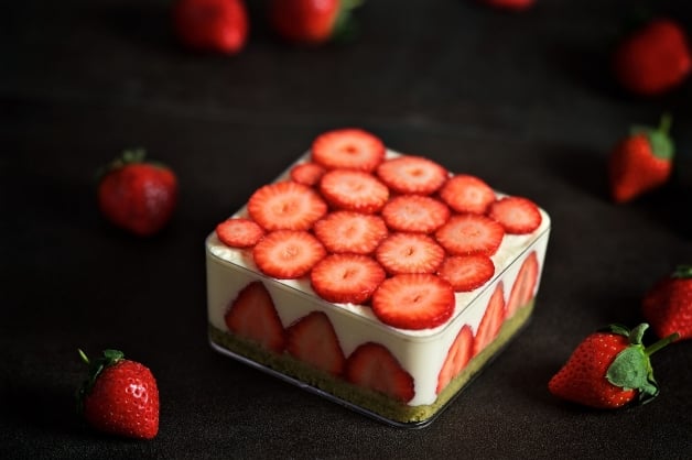 深受大家喜愛的「草莓寶盒」,有別於一般法式蛋糕,以抹茶手指蛋糕為基底,拌入白巧克力及抹茶粉,並夾入超過15顆草莓和馬斯卡邦慕斯,甜而不膩的滋味,草莓控請吃爆!