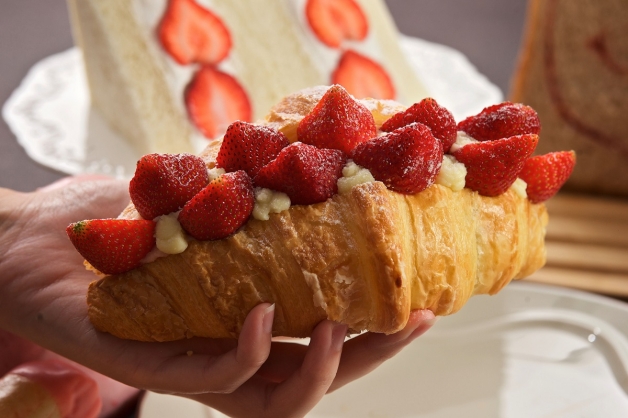 另一款銷售冠軍「可頌美莓」,將特製22公分的巨無霸可頌,內餡使用酸甜的草莓卡士達,好吃又好拍!另外還有草莓+鮮奶油組合的「草莓Queen」、蓬鬆戚風蛋糕夾香草卡士達餡的「草莓小波派」等等,喜歡草莓的妞妞們不可錯過!