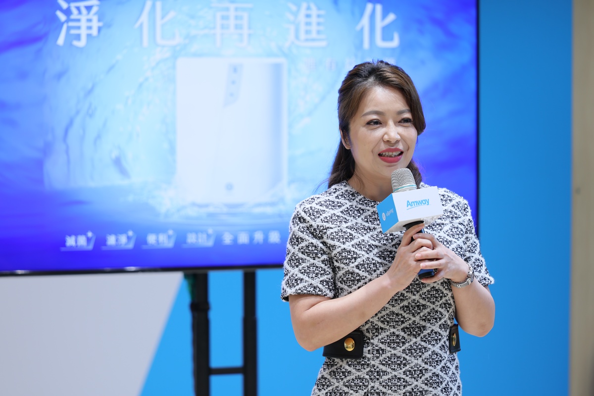 安麗日用品股份有限公司行銷長陳怡靜為「未知用水危機:你的水杯中藏著什麼?雙重水污染影響民眾用水認知調查」發布會開場致詞。(照片/主辧單位提供)
