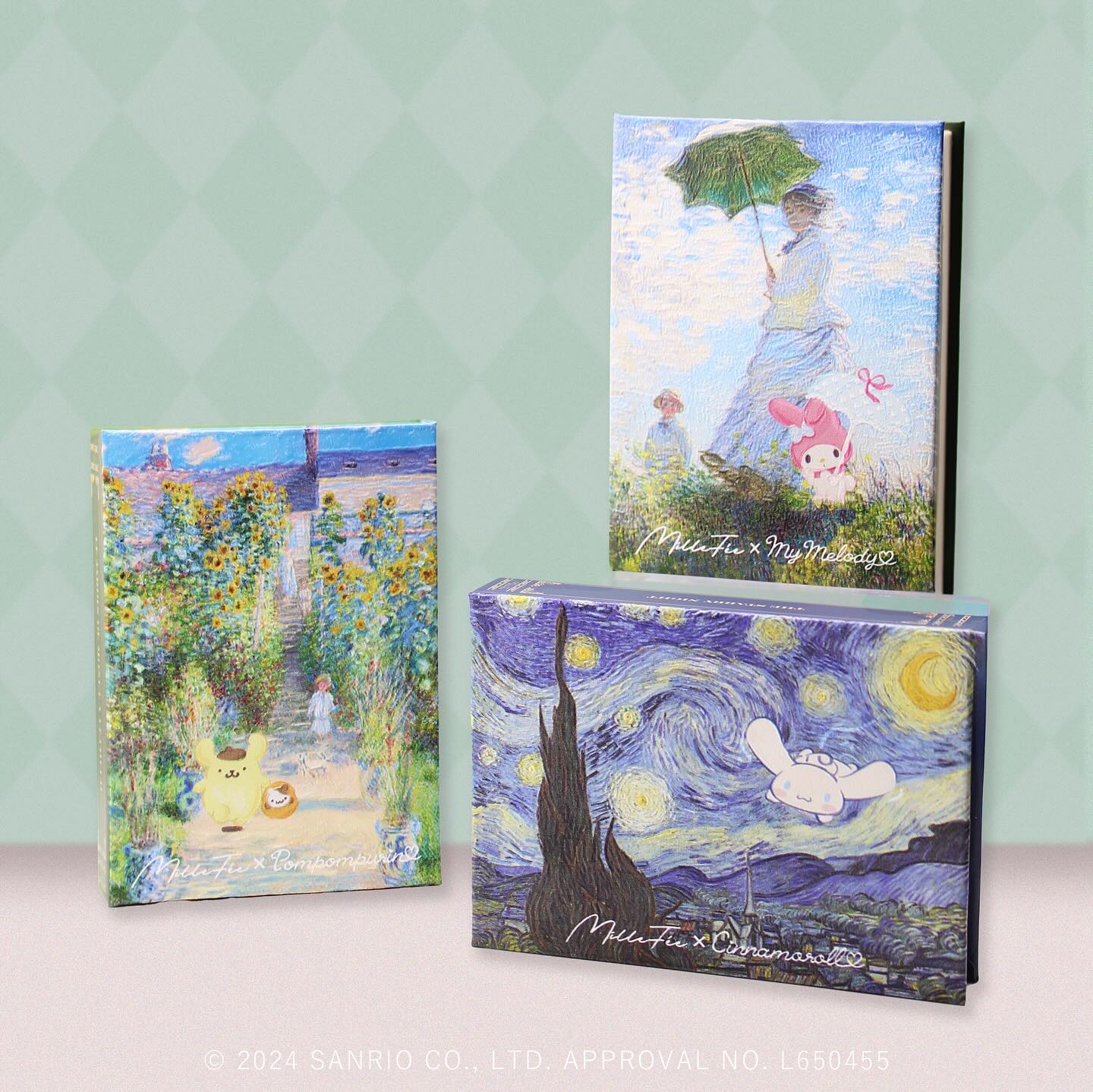 這次,MilleFée 特別把品牌旗下最具人氣的「名畫眼影盤」與三麗鷗做聯名,將系列中最熱銷的「撐傘的女人」「藝術家的維特尼花園」「星夜」3款商品,融合三麗鷗旗下的3位大明星,美樂蒂、布丁狗,以及大耳狗。每一款眼影盤都美到讓人捨不得使用!