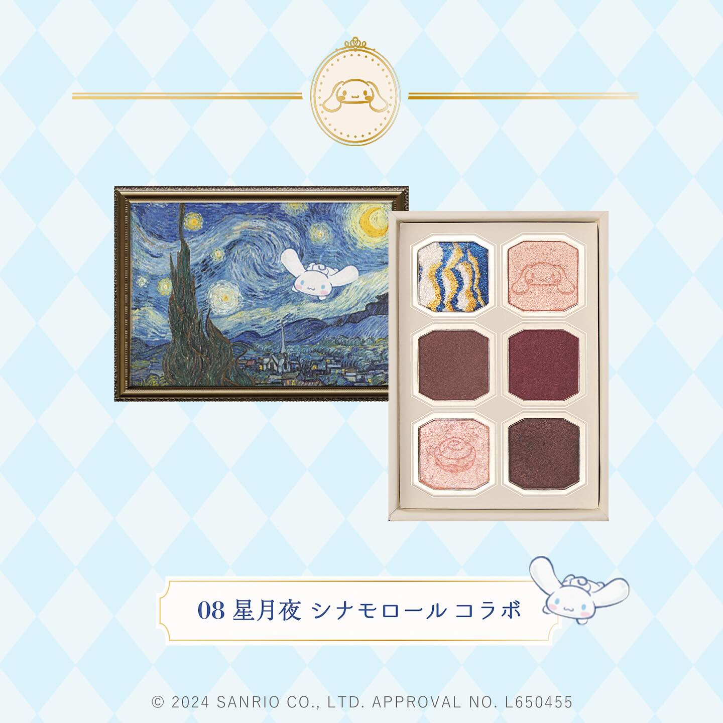 製作靈感來自於梵谷《星夜》的眼影盤,將作品的神秘世界觀給徹底還原。在眼影盤上,還能驚見在星夜之中自由翱翔的大耳狗,顯得格外可愛。為營造出畫作自帶的迷幻氛圍,眼影盤中的眼影也採用了仙氣十足的紫色系色調。在這之中,還能看到象徵星夜的大理石刻紋,以及大耳狗的臉龐!