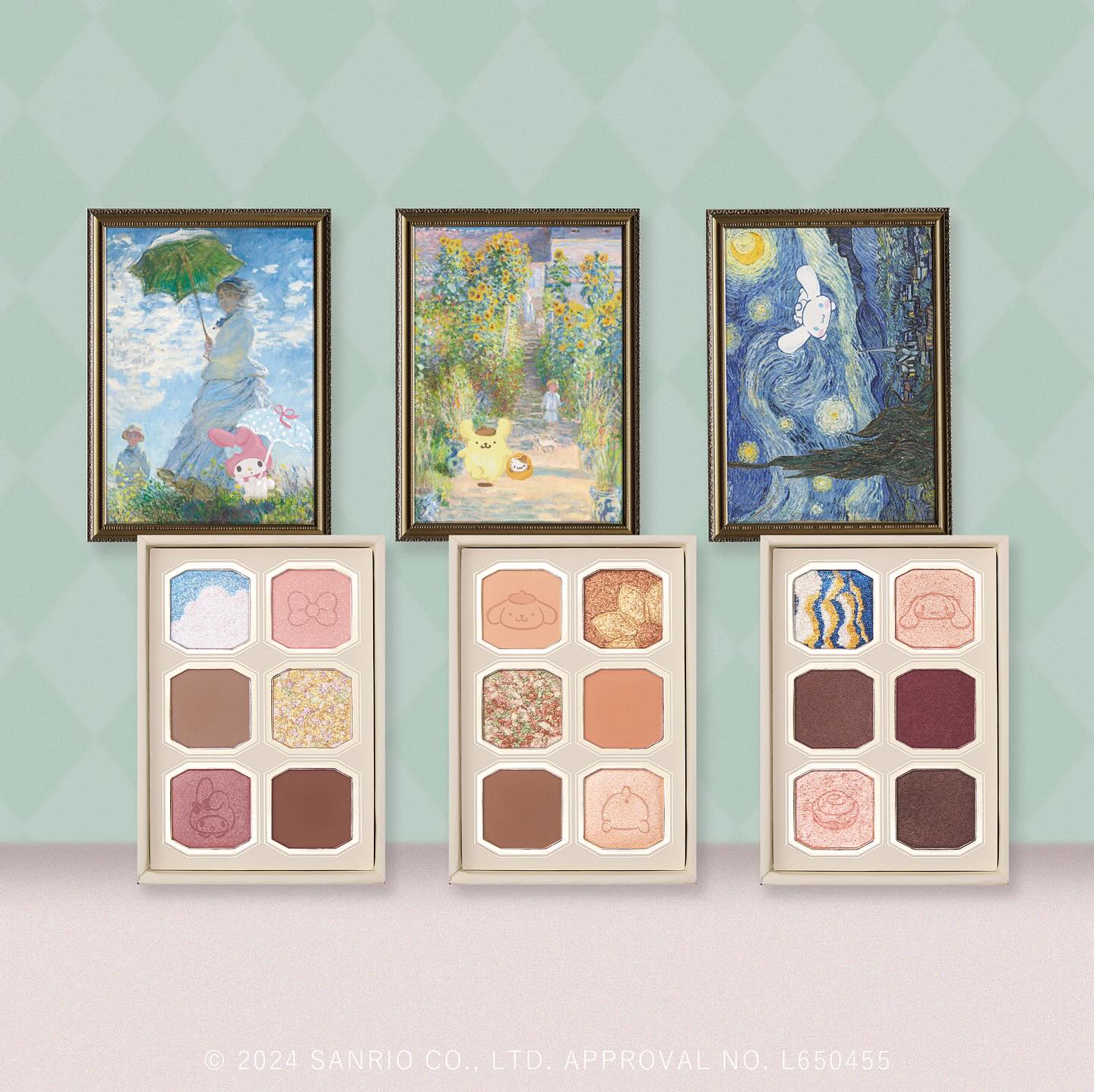 在以莫內所繪製的《撐傘的女人》為靈感打造的眼影盤中,可以撇見可愛的美樂蒂模仿起莫內妻子撐著陽傘的模樣,而裡頭的眼影也依據畫作打造出柔和印象派的色調。不光採用淡粉色的基調來呈現,還能看到藍天及白雲。專屬於美樂蒂的特製浮雕,也相當吸睛!