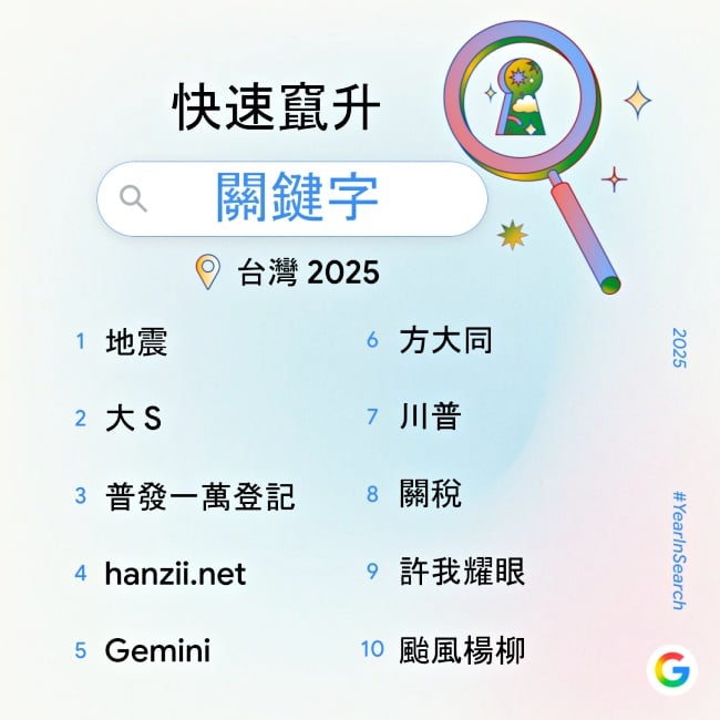 台灣2025快速竄升「關鍵字」排行榜TOP10