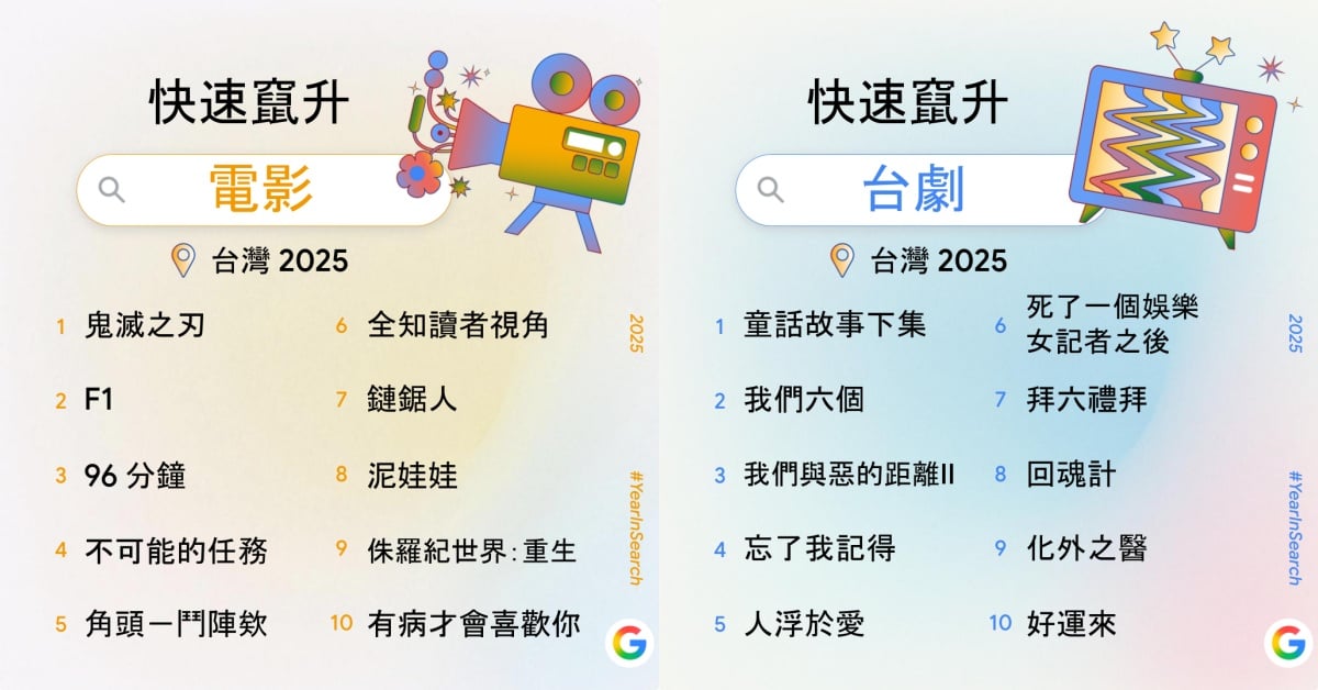 2025台灣5大「Google年度搜尋榜TOP10」!GD、鬼滅之刃奪冠,最熱搜台劇是這部