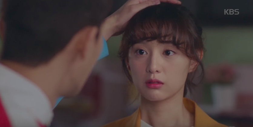 因為愛羅跟男朋友分手了,東萬就送了愛羅一個帆布包~(天噢!東萬是會送包的男人耶!)東萬看到愛羅因為收到包包而雀躍的樣子,不經意的摸了愛羅的頭~