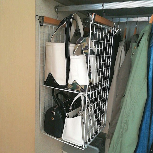 原本立體式的包包收納本來就比較困難,為了心愛的它花點心思騰出空間吧,或是利用上述撇步3拉門後的空間吊掛也是個不錯的選擇喔。