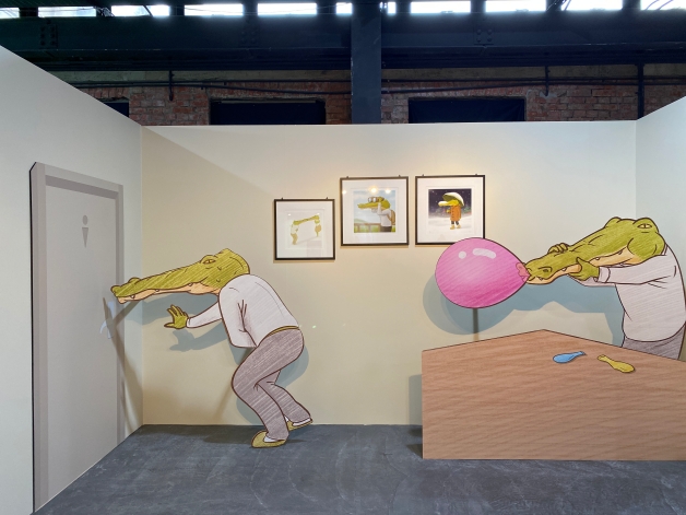 不僅元老級人物「鱷魚先生」厭世現身,就連長頸鹿、兔子、熊貓、貓和雞等其他動物也攜手來台,經典畫作區有綠番茄收到情書變紅蕃茄、熊貓夾完眼睫毛還是熊貓(誒)、長頸鹿為了跟朋友合照退到海裡等,每個都秒懂到令人會心一笑!