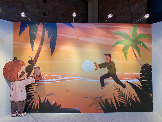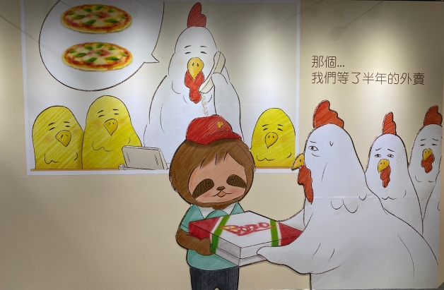 除了平面作品之外,互動打卡區更是不容錯過,展覽特別設置「立體展區」,讓大家能夠近距離與動物們互動,妞妞們可戴上特製的鱷魚頭套化身鱷魚小夥伴爬樓梯和打拳擊,體驗鱷魚先生生活中的無奈小日常,另外,就連樹懶的外賣小故事也有,究竟那個等了半年的外賣進度如何,請妞妞們去現場確認XD