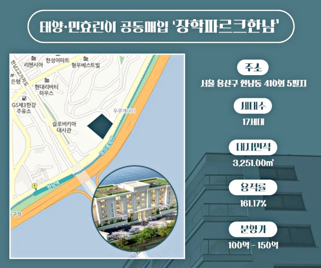 位於頂級UN山莊的新婚房Paarc hannam(장학파르크한남 ),是擁有兩層樓的豪華透天別墅,神秘的家中模樣只能透過閔孝琳以及太陽在SNS上曬出的照片看到一角,可以看到室內走簡約風,大大的落地窗還能將首爾夜景盡收眼底,還曾曝光過可以一眼眺望漢江的「絕美頂樓視角」,讓網友們讚嘆:「太羨慕了!」