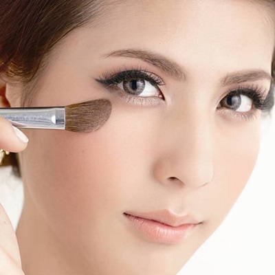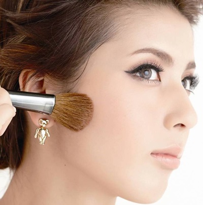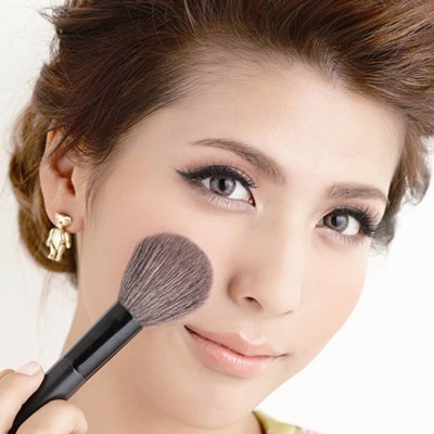用大蜜粉刷沾取較膚色深一號的蜜粉塗刷在臉部輪廓處,立刻讓臉小一號。