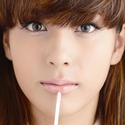由雙唇中央開始,逐漸向外塗擦珊瑚粉色系唇蜜。並在下唇中央以及上唇唇峰處,使用少量淺粉紅色唇蜜打亮,可以讓雙唇顯得立體。
