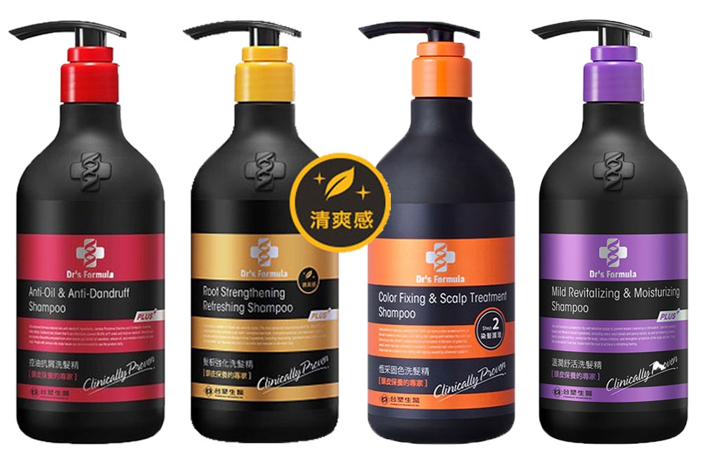 由台塑生醫研究中心研發,貼心主打一系列紅紫橘瓶色各種不同功效,不論是頭皮出油困擾、乾髮缺少潤澤或是染髮維持不掉色等狀況,都能有對應的產品。