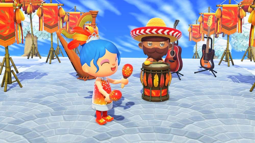 為了迎接狂歡節,2月1日開始Nook商店會上架相關主題家具與新表情,在裁縫屋也能買到森巴服裝,下載更新資料還能獲得免費禮物「沙錘」,從佈置、服裝至道具應有盡有,只為給大家一個難忘且熱鬧的狂歡節。