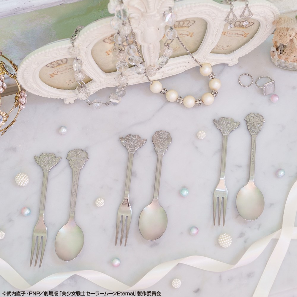 E賞是鐵製餐具,握把精緻刻上永恆月亮變身器永恆月光神杖小小兔的變身器,以及「黑貓露娜」,共有3款可選,用它來場下午茶,秒添氣質氛圍!
