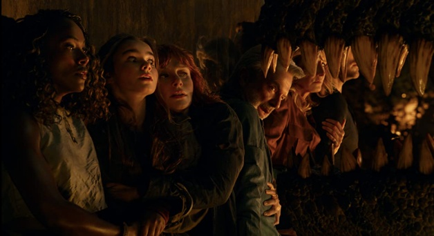 艾莉·莎塞勒調查因為巨大蝗蟲而出現前所未有的生態危機之時,艾莉第一次看到恐龍時的驚訝表情和看到蝗蟲幾乎如出一轍!(OMG)