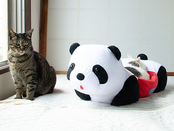 有養貓的人一定懂,喵主子可是十分挑剔的生物,雖然貓窩可愛又實用,但大多數時候牠們寧願選擇紙箱,也不一定會睡在貓窩裡。熟知貓貓機車習性的 Felissimo 貓部策劃人,為此特地把熊貓車貓窩加入「紙箱元素」,也就是讓貓窩略為下陷並且築出四壁,讓喵主子就像睡在紙箱內,甚至還可以把頭靠在貓窩上緣,滿足饋桃的心願,聽起來是不是很棒呢?