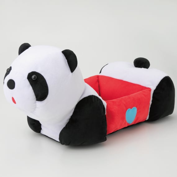 這款熊貓車貓窩主打「徹底再現熊貓車」,將熊貓的迷茫表情(?)、腿和屁屁的立體造型、身上的藍心造型神還原,完全不放過任何一點細節,甚至連車子的方向盤+投幣孔都十分講究,面板上的文字「只能使用 100 日元硬幣」也被忠實呈現出來,腦海中似乎都響起了熊貓車的主題曲~(笑)