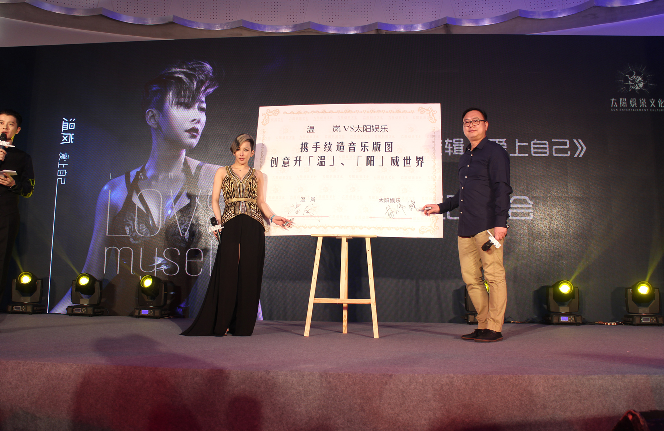 選擇繼續花落太陽娛樂,現場特別準備大型合約書,讓林執行董事與温嵐簽約,上面並寫下「創意升『温』、『陽』威世界」,正式宣布雙方將創造更多的音樂傳奇,温嵐表示:「太陽代表著溫暖,正如同公司名字給我溫暖,簽約的同時,表示我準備要生第二胎了,興奮但也有壓力,大家都喜歡我的老大《愛上自己》專輯,希望第二張專輯也能夠引起熱烈的迴響跟好評。」