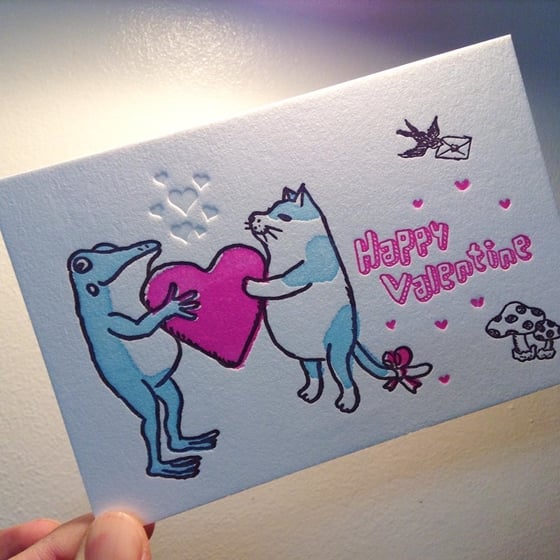目前生活在大阪的他,四年前接觸了這種一次只能印刷一種顏色的活版印刷技術,就被那獨特又細緻的古老技術而迷上,進而開始設計親朋好友的名片、明信片等各種紙製小物,加上有趣又kuso的畫風,讓它也登上Pinkoi、Creema等設計平台販售。