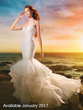 愛麗兒禮服超貼身S型剪裁很考驗身材,大腿處開始延伸散開的魚尾設計,走路時飄動的效果就如同真的尾鰭一樣浪漫。而且這套設計也不是一般常見款式,相信會正中許多喜愛獨特風格的女孩心。