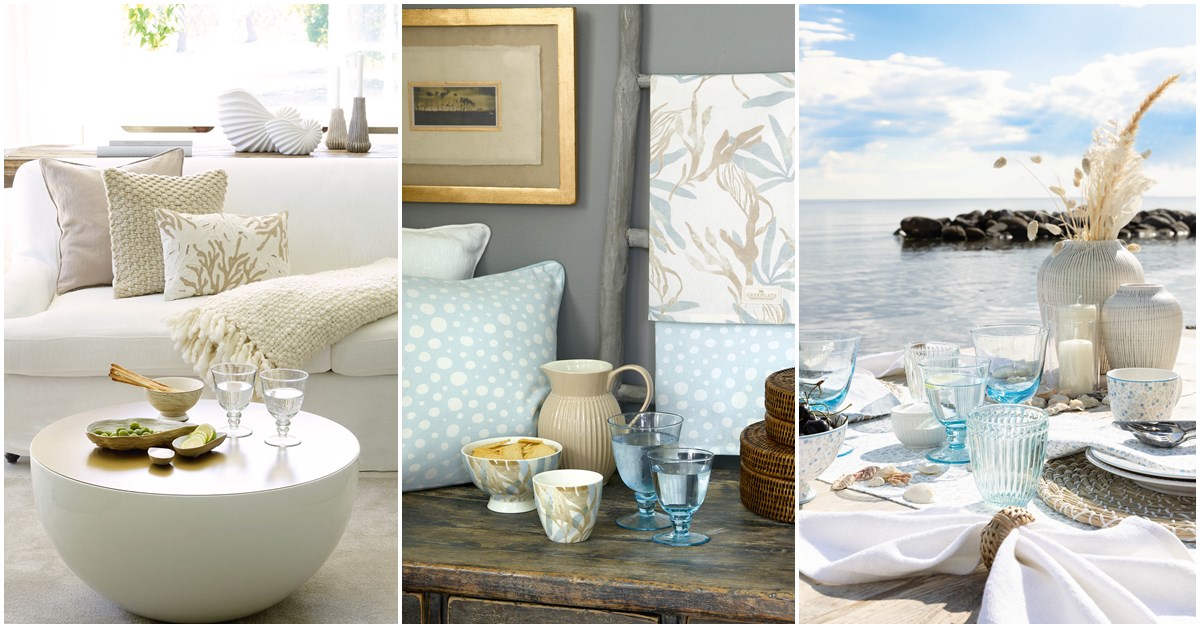 「DAHLA系列」以經典的藍白色系為基調,搭配條紋、點點、清透玻璃再點綴上貝殼,輕鬆營造夏日的海洋風情,彷彿置身在北歐丹麥的蔚藍海岸,系列商品包含玻璃水瓶、軟墊、餐盤瓷器等。