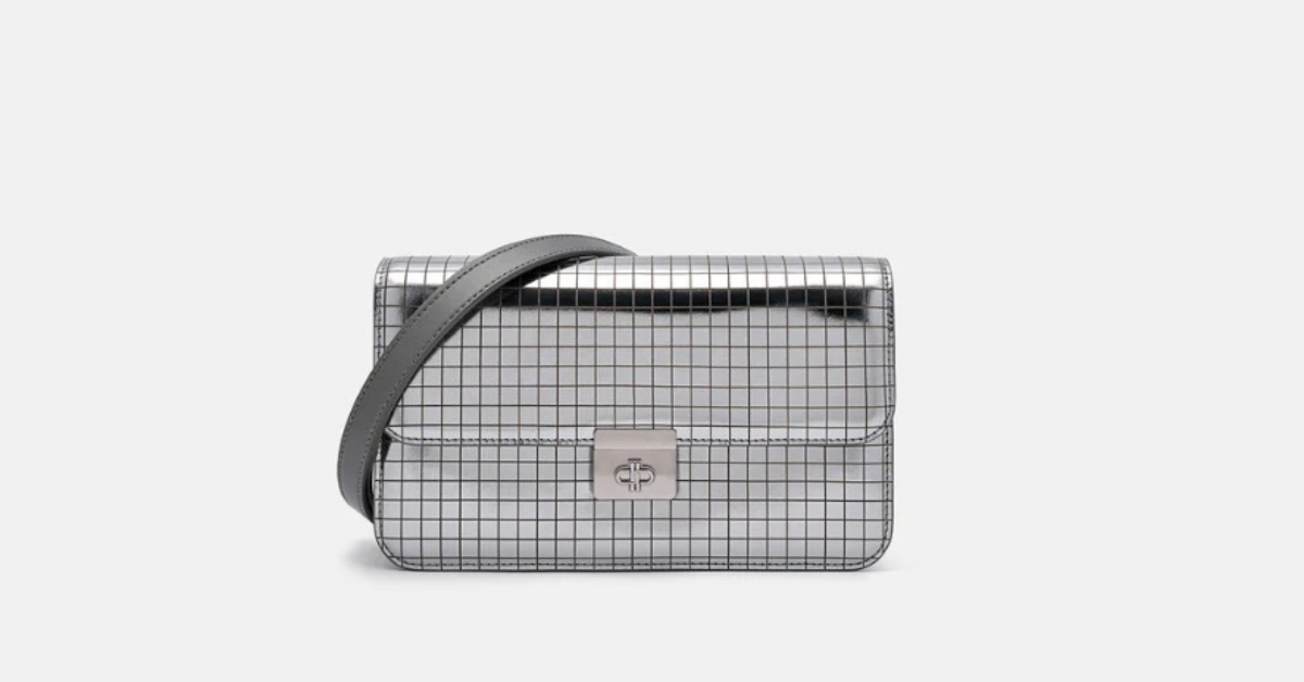 以小牛皮製成、帶高光澤鏡面效果的肩背包,是整個派對系列的「閃亮 MVP」。圓潤結構、雷射格紋,以及讓人想起 Disco 夜色的流光感,全都是時髦女孩冬季必備的派對符碼。