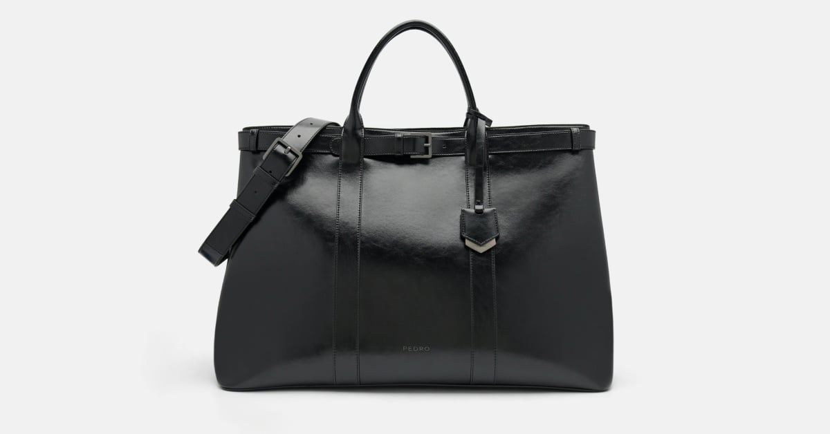 在 Echoes of Glamour 的男仕篇章中,PEDRO 以黑色為視覺基調,以低調方式放大質感。皮革流蘇樂福鞋以現代剪裁重塑經典,同時保留細節魅力。與之搭配的 Icon 皮革斜挎包以方正輪廓呈現沉穩風格,紅褐色皮革讓氣質更深韻。
