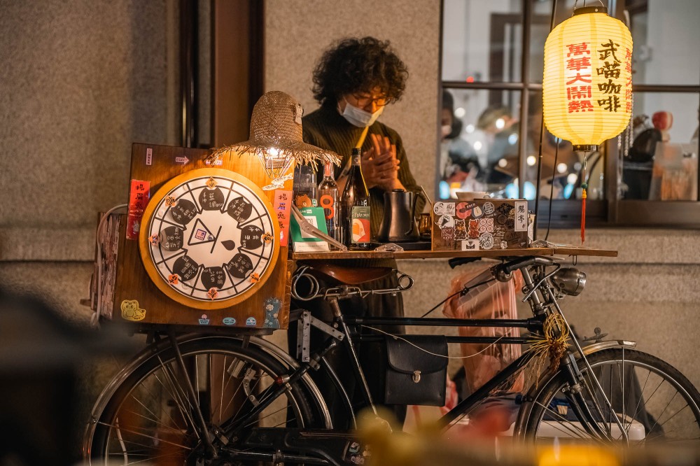 來自大稻埕的「武喵咖啡」,以台灣早期用於載貨的老式腳踏車「武車」為攤車,騎行各地傳遞咖啡香。以手沖方式現場沖煮,結合復古移動攤車的精神與現代咖啡職人的堅持,為市集帶來一杯帶著老台灣風味的香濃咖啡。