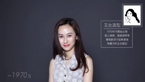 1970年代台灣則因為瓊瑤劇的流行,讓沒有劉海、無明顯層次的玉女髮型開始流行。而將頭髮放下、讓髮絲可隨風飄揚的柔美線條,也帶來了愛情的濃烈情感與浪漫氛圍。