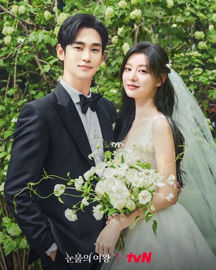 《淚之女王》由金秀賢、金智媛、朴成焄、郭東延、李主儐等人主演,劇情講述出生鄉村的法律高材生白賢祐(金秀賢 飾)與財閥之女洪海仁(金智媛 飾)結婚後,感情逐漸褪去,變成「女強男弱」的夫妻關係,直到海仁罹患癌症才有了轉機!兩人在該劇首集就步入婚姻,而且婚禮現場、婚禮造型還與玄彬、孫藝珍真實的世紀婚禮相似,簡直不要太夢幻!