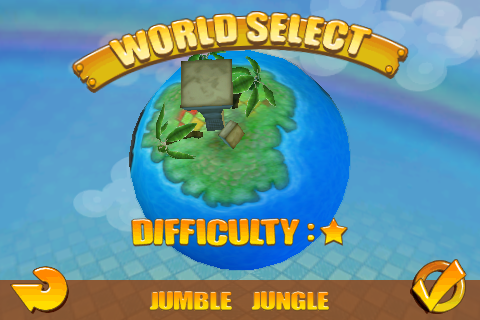 玩家們有MEEMEE,BABY,AIAI,GONGON等四個主角可以選擇,選畢後則可以在[World Select]選單中選擇關卡,而在尚未破關之前只有難易度最低的Jumble Jungle可以選擇,共20關,分成兩個Set(1~10, 11~20),破關後則會開啟新的關卡讓玩家挑戰!