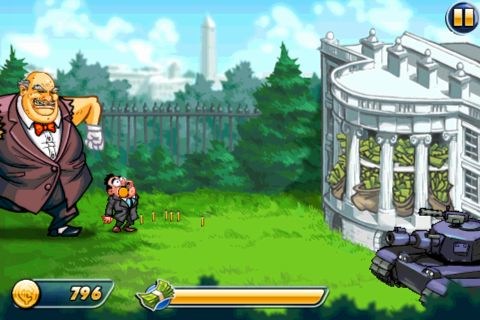 再接著更誇張的是有拿著吸塵器預備來吸金的胖Banker,千萬不能讓他們接近國庫,不然可以損失可大了!但消滅他的方式很簡單,點兩下讓他的真空吸管爆炸,他就完蛋了!