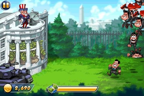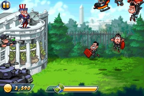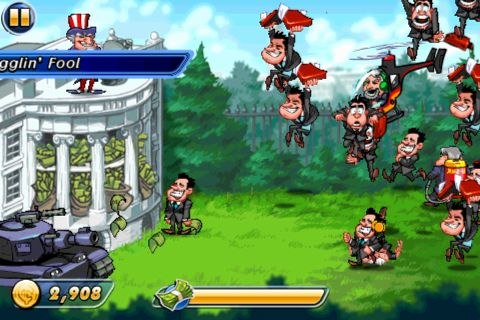 對付普通的Banker有三種方式可以消滅他,一種是直接點他把他丟向天空,他就會摔下來然後被消滅(被消滅的畫面一點也不血腥可以不必擔心);另一種則是對著他點兩下,他就會膨脹爆炸;最後一種最花時間,但是消滅他所帶來的金幣收入會最多,就是將Banker抓起來晃幾下,他的衣服還會被扒光,非常有「笑」果!