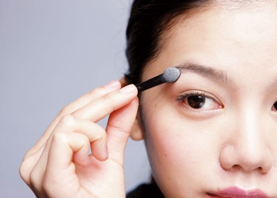 用珍珠白色眼影輕刷在眉骨上,增加眼周立體度