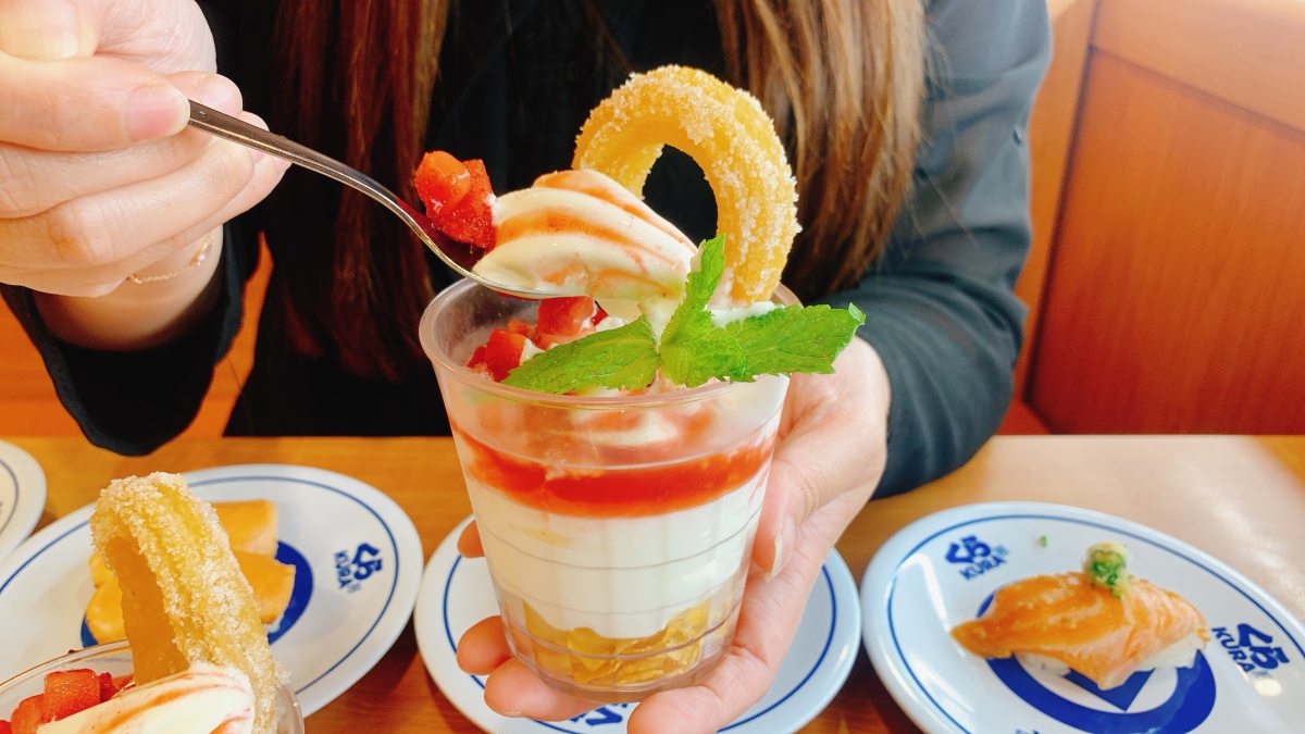 最後是草莓控一定要點的兩款甜點,包括酸甜爽口的「草莓千層蛋糕」,一入口即能嘗到冰涼又充滿草莓香氣的豐富內餡!另一款「戀戀吉那草莓聖代」,以新鮮草莓醬點綴冰淇淋,再搭配上現炸及吉那棒,多重口感在口中融合,滿足少女的甜點胃~