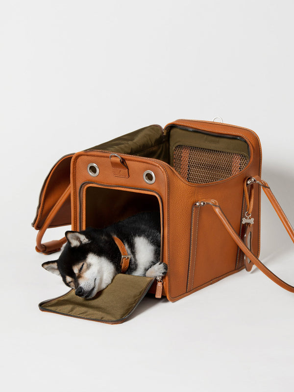 由兩種皮革組合製成的豪華手提包,可說是攜帶愛犬外出的最佳選擇!不只內部採用容易清潔的尼龍材料,側面更設計了通風性良好的網狀窗戶,讓主人能夠隨時與毛小孩對視。同時,手提包也打造出讓狗狗們暢行無阻的超大開口,當作簡易狗屋也不成問題。